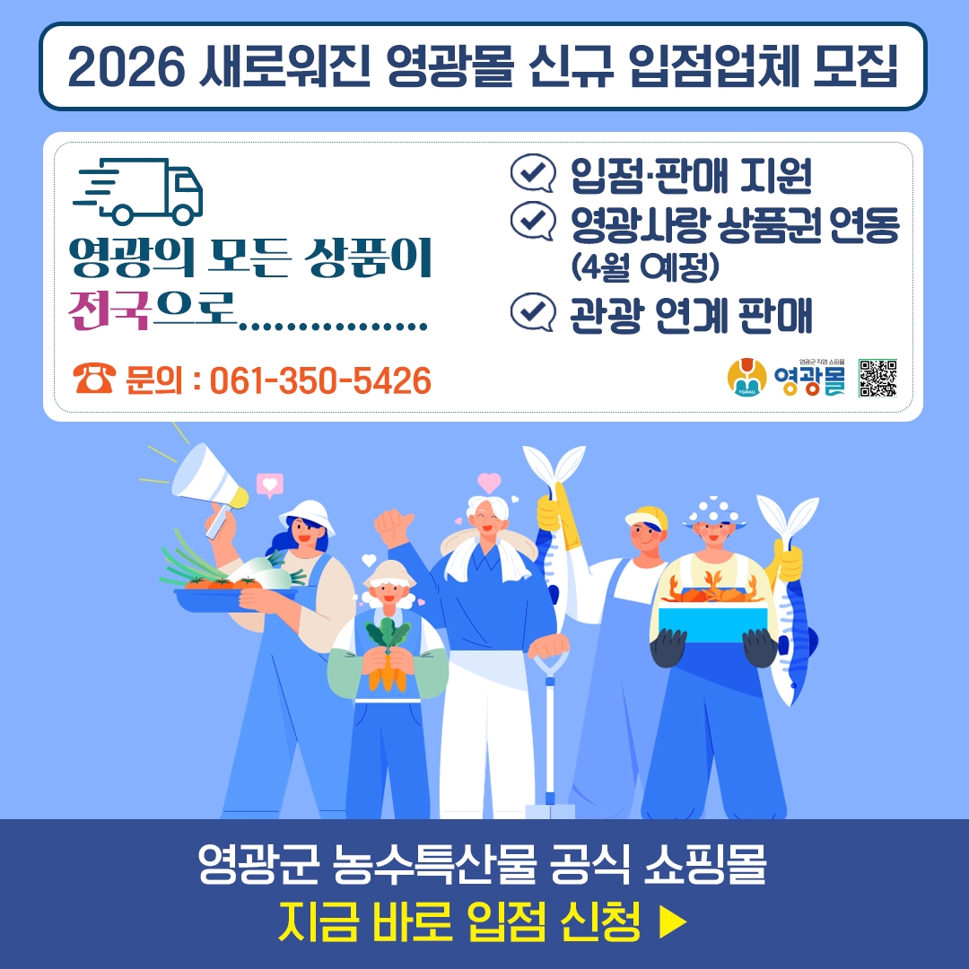 영광군, 공식 온라인 쇼핑몰 '영광몰' 입점업체 모집
